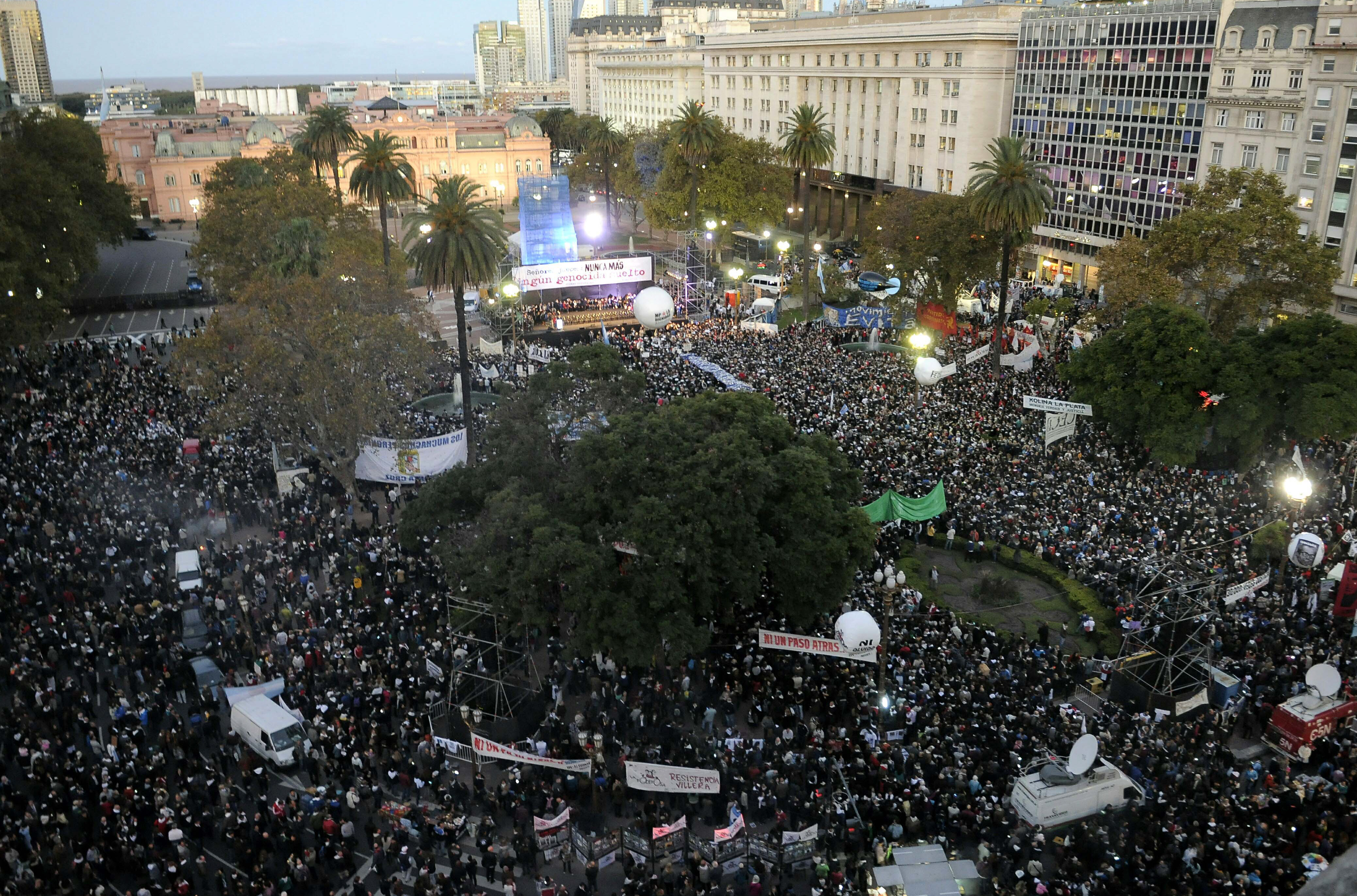 Organismos de derechos humanos, agrupaciones sociales y partidos políticos encabezaron ayer la multitudinaria manifestación. Dos horas antes de comenzar el acto, que empezó a las 18, la Avenida de Mayo y las diagonales Norte y Sur fueron el escenario en la Ciudad Autónoma de Buenos Aires de la marea humana que marchó hacia la histórica plaza convocada bajo la consigna ‘Señores jueces, nunca más un genocida suelto‘.
