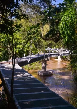 Esto dará una mayor comodidad y fluidez al tránsito de visitantes, que circularán todos hacia el mismo lado -sin los aglomeramientos que se forman al cruzarse dos grupos numerosos- lo que reducirá el impacto ambiental para la fauna al acumular menor presencia humana. La obra serpentea entre altos árboles, en gran parte sobre el cauce del río, y conecta una serie de isletas de suelo rojo y cubiertas de tupida vegetación selvática.