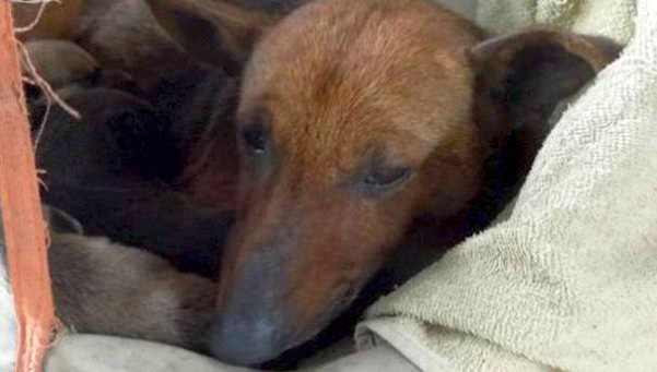 Así, Santino pasó la noche durmiendo entre la perra madre y sus crías y se estima que sobrevivió la noche del viernes y la madrugada del sábado, en la que hubo una temperatura de 3 grados bajo cero, gracias al calor de la perra.