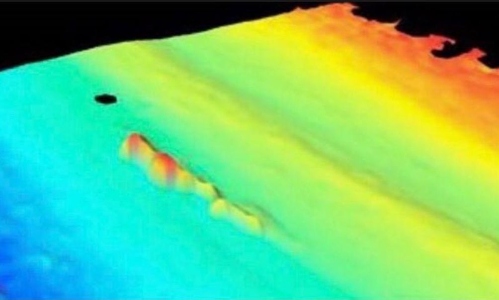 Las imágenes fueron inspeccionadas “entre las 9 y 13 hs del día de hoy, en posición 46º24.5″ Sur y 60º11.7″ Oeste a una profundidad de 477 metros, siendo de forma alargada, con arrumbamiento norte-sur, de aproximadamente 62 metros de longitud y 13 metros de altura”.