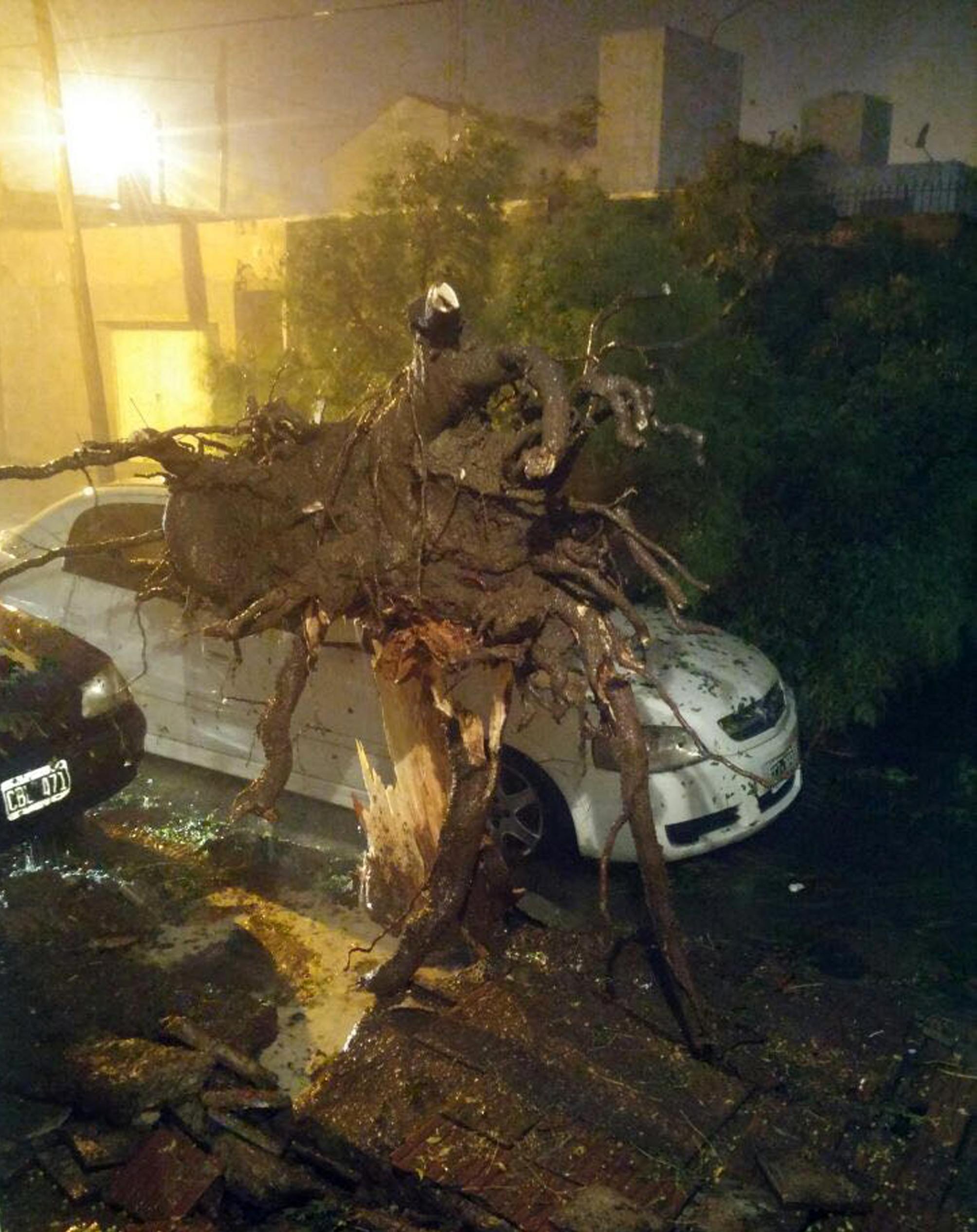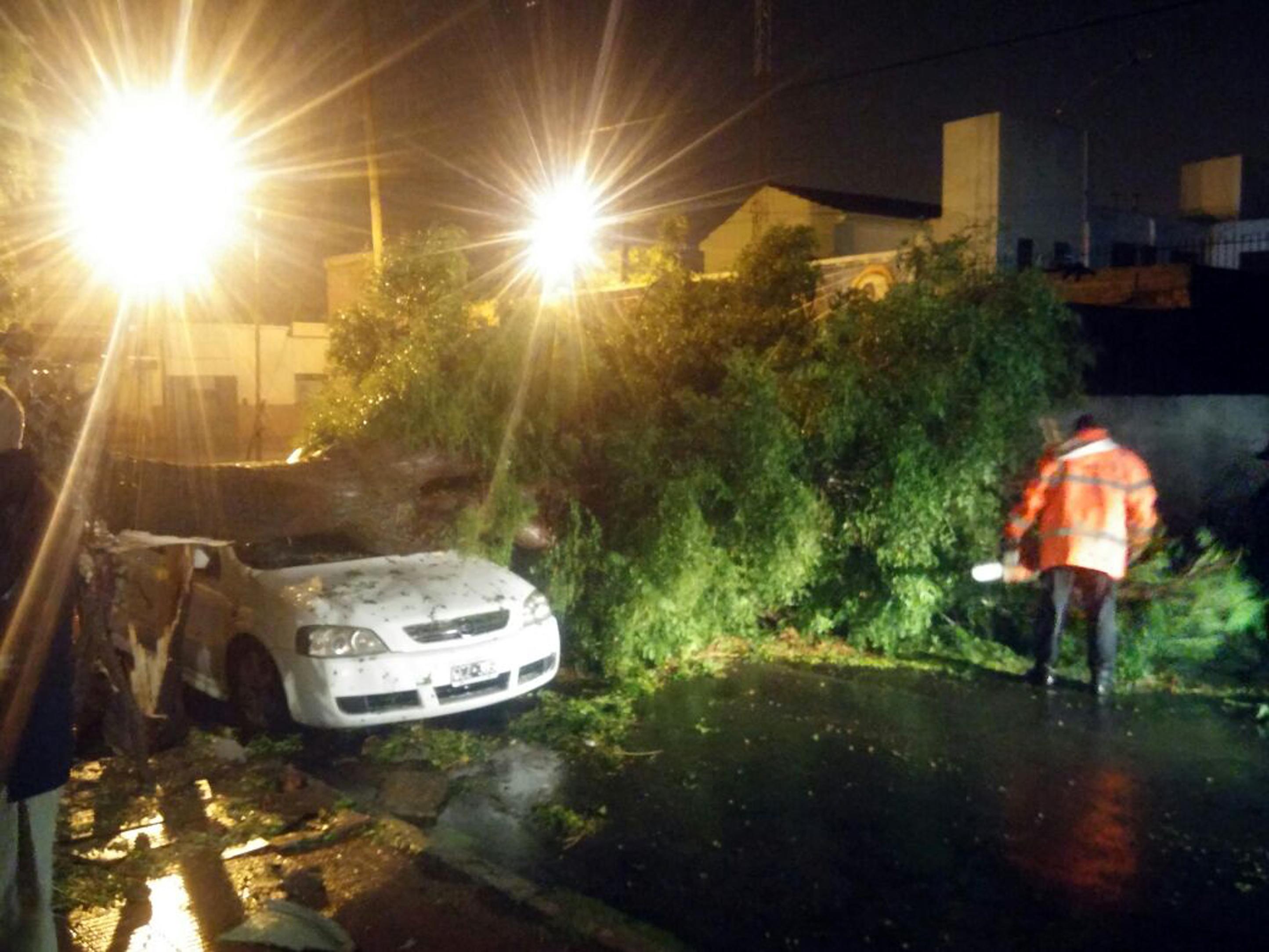 Una tormenta con ráfagas de viento que alcanzaron los 110 kilómetros por hora, granizo y una lluvia intensa que alcanzó los 30 milímetros en una hora, provocó daños materiales en San Luis, donde se inundaron calles, se derrumbó al menos una vivienda, volaron techos y cayeron numerosos árboles que dañaron autos estacionados en las calles de la ciudad.