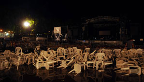 En menos de diez minutos, el anfiteatro municipal quedó convertido en una postal desoladora. A estas alturas, la suspensión del show del popular Axel fue anecdótica. Padres gritando desesperados en la oscuridad el nombre de sus hijos, gente llevando a menores heridos en brazos, llantos, sirenas de ambulancias, carteles luminosos que explotaban haciendo cortocircuito, gente que escapaba por las calles con las sillas que usaron para protegerse de la lluvia.