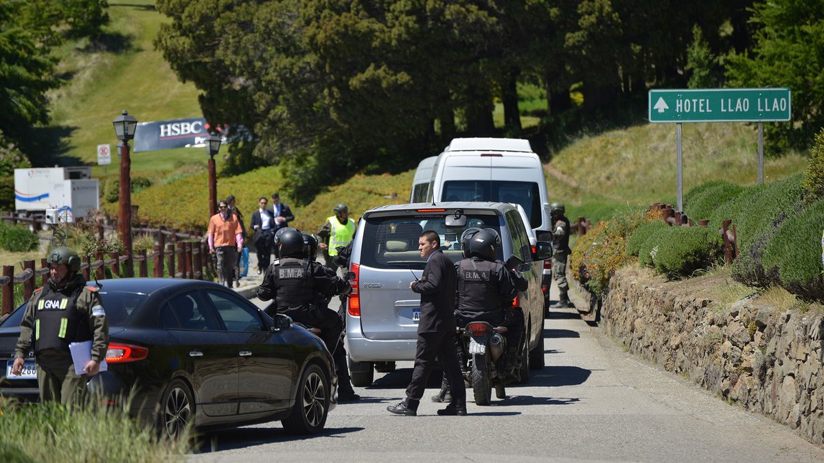 La ruta Bustillo que va de Bariloche al Llao Llao está atestada de policías y equipos de seguridad. Hay retenes previos y una especie de anillo antes de llegar a la zona de la cumbre del G20. Hasta ayer se podía acceder hasta la misma zona del hotel pero el ingreso al Llao Llao era imposible. Hoy se dificultará incluso el acceso hasta el hotel.