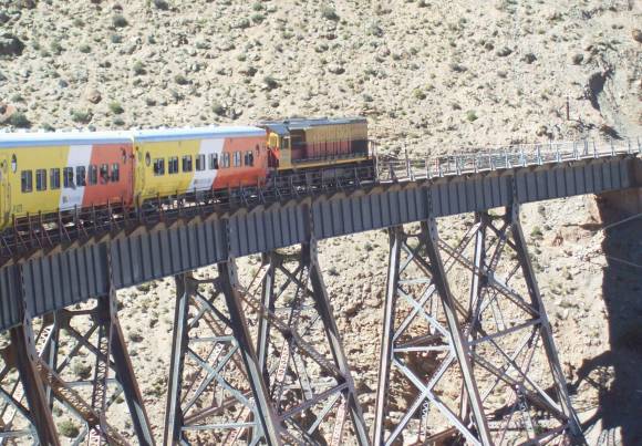 Sólo observado por manadas de guanacos y cóndores, el tren sigue en ascenso y llega al final del recorrido, la frutilla del postre: el viaducto La Polvorilla, una monumental obra de acero de 63 metros de largo y 1.590 toneladas, a 4.220 metros sobre el nivel del mar y 63 metros encima de la Ruta 40.