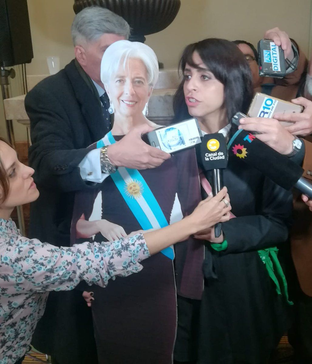"Creemos que (Lagarde) es la verdadera autora de Presupuesto que se está tratando, creemos que quien redactó esto es el Fondo Monetario Internacional", argumentó Donda en relación a la presencia de su "compañera" de cartón.