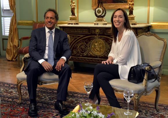 El gobernador Daniel Scioli y Vidal mantuvieron ayer en La Plata la primera reunión con vistas a la transición de gobierno, al término de la cual la mandataria electa se manifestó conforme con el diálogo.