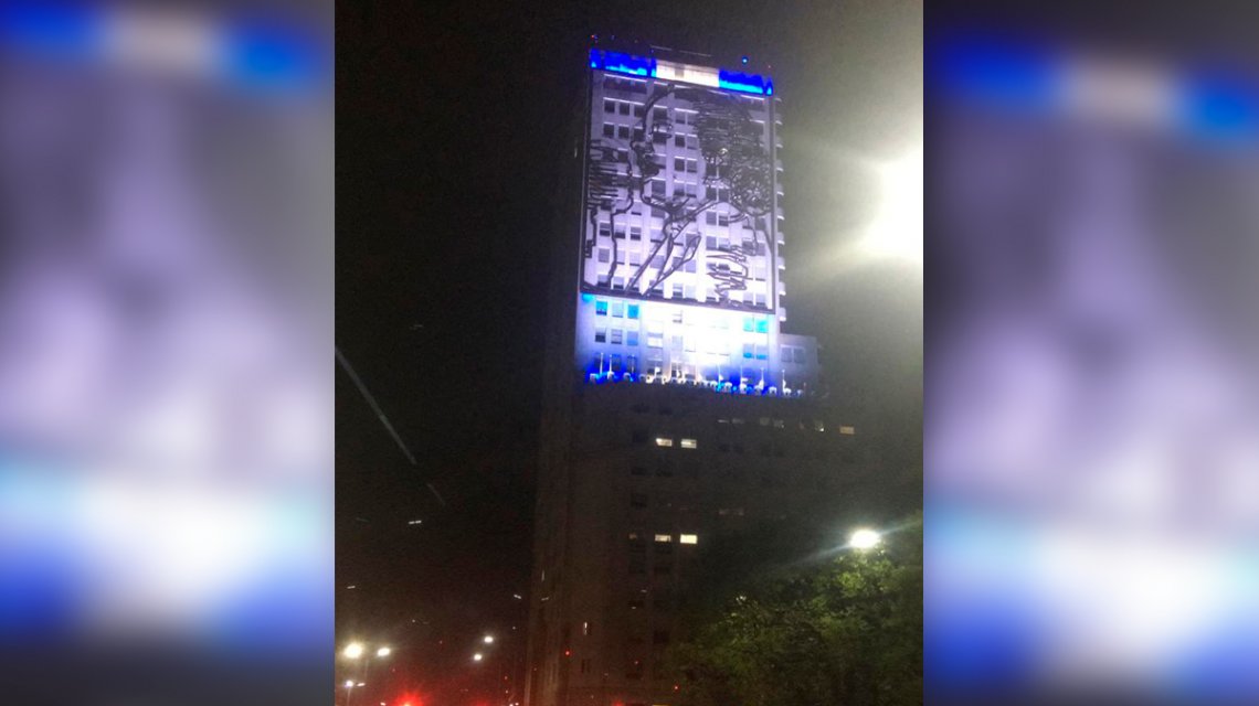 La imagen de Eva Perón en el edificio del ministerio de Salud y Desarrollo Social volvió a estar completamente encendida por primera vez con Mauricio Macri como presidente. Trascendió que fueron los empleados del organismo quienes prendieron las luces.