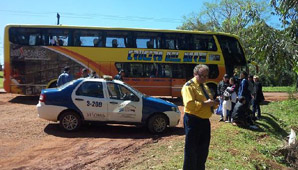 Misiones 23 de septiembre.- Estaba por llegar al acceso sur de la ciudad de Eldorado, en Misiones, cuando uno de los pasajeros que viajaba en el piso de arriba del micro empezó a gritar y a golpear su ventana con fuerza.El chofer, advertido de la situación, decidió parar al costado de la ruta hasta que todo se calmara. Fue entonces que el hombre tomó el martillo de emergencia, rompió el vidrio y se tiró frenéticamente.