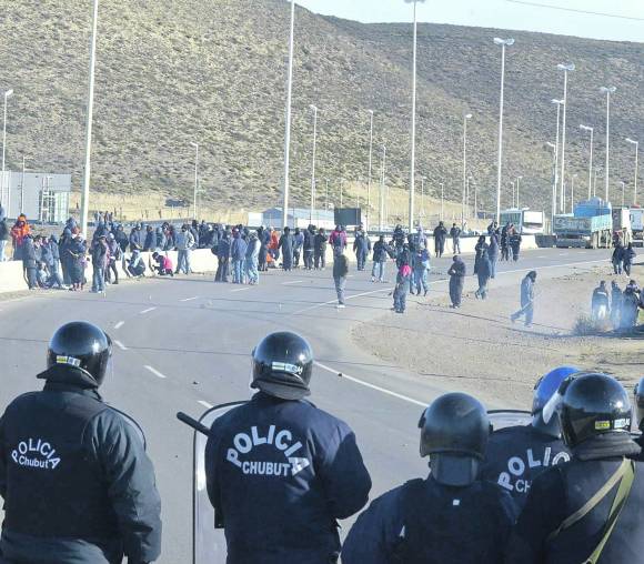 El grupo se enfrentó con el secretario general de la UOCRA Santa Cruz Zona Norte, Américo Palma, mientras uno de los manifestantes tomó del cuello a un delegado y otros arrojaron distintos objetos a los dirigentes, informó el diario El Patagónico.
