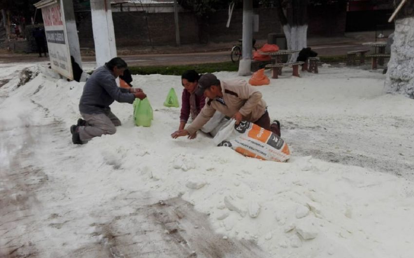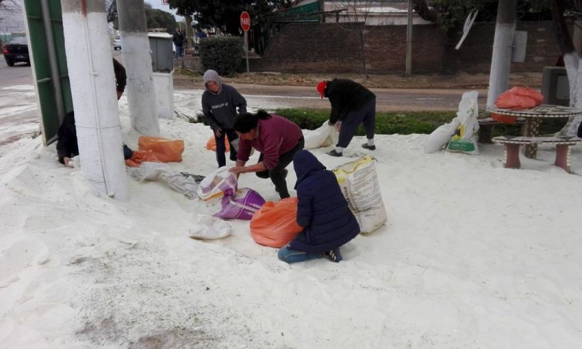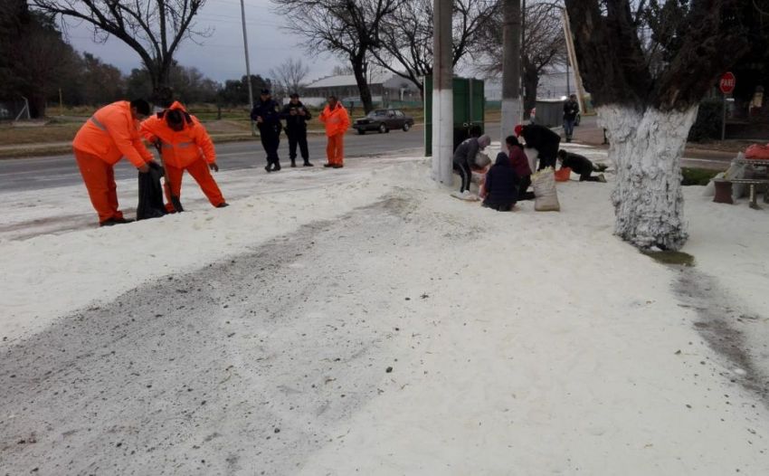 Vecinos de Colonia Caroya amanecieron con un suelo cubierto de blanco pero, pese a las nubes y al frío, distaba bastante de ser nieve. En realidad se trataba de un camión volcó y aprovecharon a llevarse el azúcar que quedó desparramada.