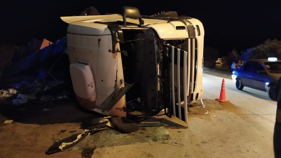 Anoche un camión de la empresa “Transporte Santa Cruz” que transportaba cajas de vino de exportación que iba desde Mendoza hacia Buenos Aires, habría mordido la banquina en el kilómetro 667 de la Autopista de las Serranías Puntanas cerca de Justo Daract y el chofer perdió el control.