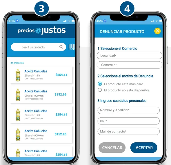 * Denunciar un producto o comercio por no cumplir con Precios Justos