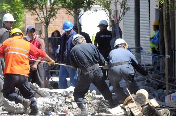 El secretario de Servicios Urbanos del Municipio de Neuquén, Sergio Sanfilippo, destacó que ‘se trabaja con todo el personal municipal, esto es quirúrgico y muy lento‘. ‘La Policía de Investigaciones dice que aparentemente los perros han detectado que puede haber cuerpos entre los escombros y tenemos la esperanza de encontrar gente con vida‘, añadió Sanfilippo. El funcionario confirmó que el accidente fue provocado al desmoronarse una construcción ‘clandestina‘. ‘Había un sector de una obra de ocho departamentos que estaba totalmente clandestina. Un sector que de la única manera que se puede divisar es con un helicóptero o con un avión, porque estaba en el corazón de la manzana, es una obra que hace 45 días que había comenzado‘, indicó Sanfilippo. El jueves cerca de las 19.45 se produjo un derrumbe en el edificio que alquila la Cooperativa Obrera, donde funciona la sucursal de Neuquén. Los brigadistas continuaban esta tarde su labor sobre una losa para intentar ‘rescatar la mayor cantidad de personas posibles‘ tras el derrumbe, explicó el jefe de Defensa Civil de Neuquén, Rubén Elías.