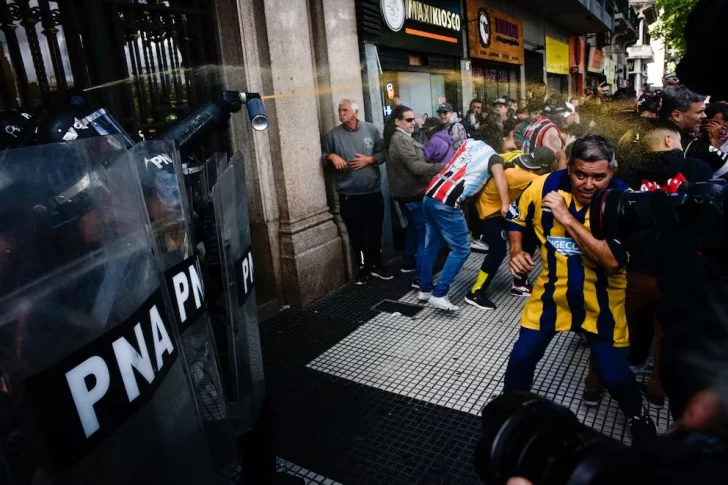 Algunos de los barras también protestaban frente al Ministerio de Economía, en una de las esquinas de la Plaza de Mayo. Pasadas las 18:20, los efectivos habían logrado dispersar a algunos de los manifestantes.