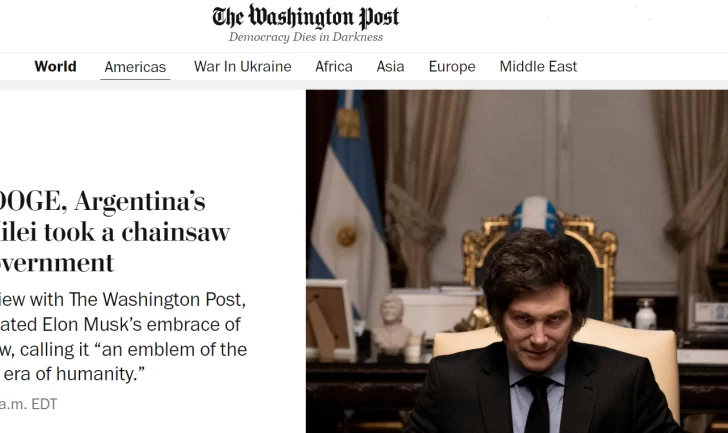 El artículo, que mezcla algunas frases de Milei con consideraciones del periodista que lo entrevistó en la Casa Rosada, señala que el Presidente es llamado “el Trump libertario de Sudamérica” y también que el mandatario estadounidense habla de él como su “presidente favorito”.