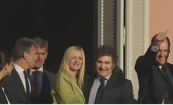 Javier Milei salió al balcón de la Rosada acompañado por sus ministros, en un acto cargado de emociones. Entre los presentes estaban sus padres y su novia, Yuyito González. El Presidente se acercó hasta la entrada principal para saludar a los simpatizantes.
