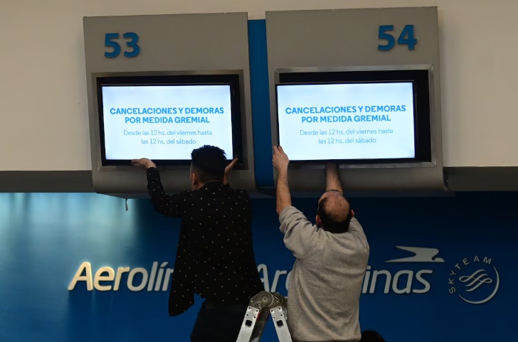 LATAM Airlines, por ejemplo, emitió un comunicado oficial en el que informaron que “debido a una huelga anunciada a la que se adherirían los gremios que nuclean a los trabajadores de Intercargo (empresa que presta servicios de rampa en todos los aeropuertos de Argentina), se podrían registrar demoras y/o cancelaciones en vuelos desde y hacia Argentina el 10 de abril”.