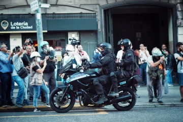 Los efectivos se abroquelaron formando rígidos cordones para evitar que la manifestación interrumpa el tránsito. Se desplazaron motos para despejar las calles y con firmeza los uniformados le exigieron a cada persona que se mantengan en las veredas.