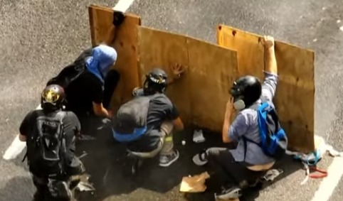 Sin embargo, cerca de las 15:46, la violencia escaló: un grupo de manifestantes lanzó bombas molotov contra la Policía, luego de recolectar piedras y armar los explosivos caseros detrás de carteles. Las fuerzas de seguridad respondieron nuevamente con agua para apagar los focos ígneos y dispersar a los involucrados.