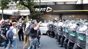 Pasadas las 15, un grupo de manifestantes intentó ocupar la calzada, pero la Policía Federal, Gendarmería, Prefectura y efectivos de la Ciudad formaron cordones para contenerlos y mantenerlos sobre la vereda. Hubo empujones y forcejeos, especialmente en la intersección con Bartolomé Mitre, donde las fuerzas avanzaron para disolver el grupo que había intentado desplazarse.