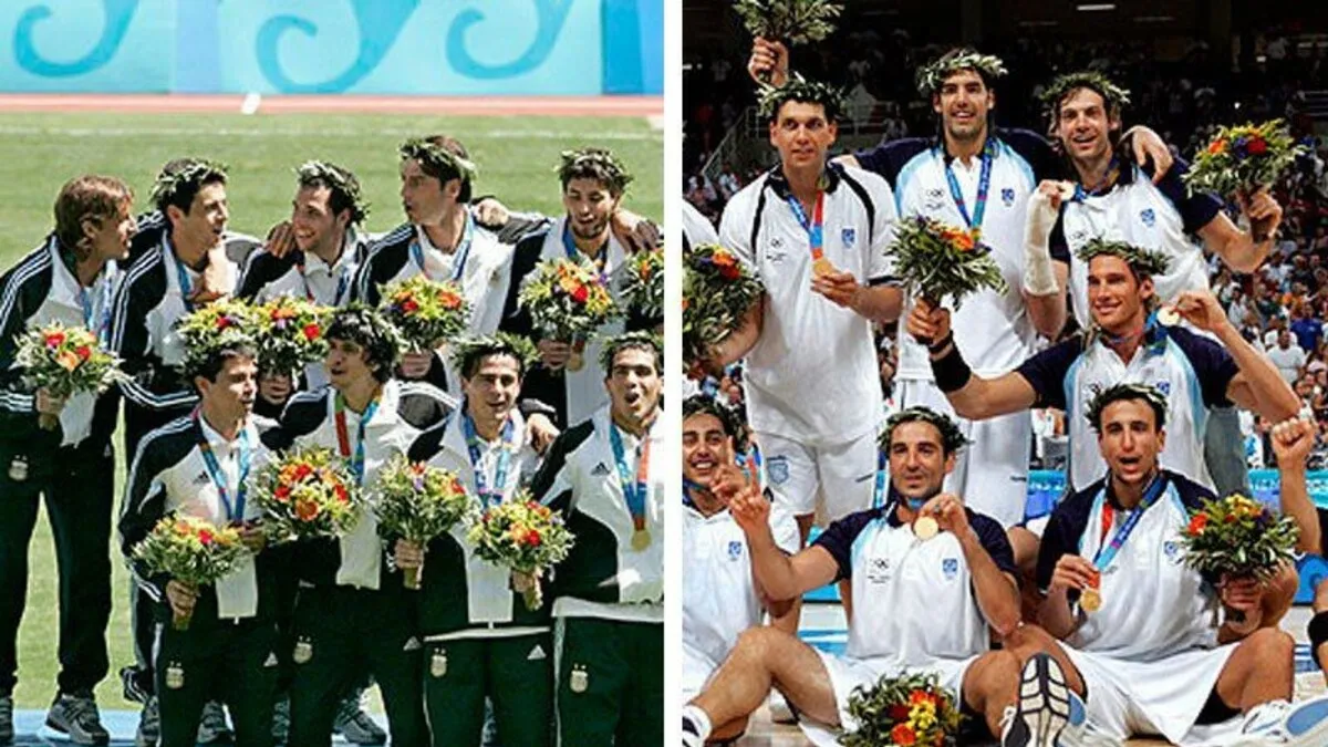 A las 5:51 de la mañana, hora argentina, el equipo de fútbol masculino obtuvo la medalla de oro ganando todos los partidos y sin recibir goles en contra. Era la primera medalla de oro para la Argentina en 52 años y el único título mayor que el fútbol argentino no tenía. El equipo era dirigido técnicamente por el rosarino Marcelo Bielsa marcó 17 goles en 6 partidos, y no cedió ningún gol durante toda la competencia, marcando un auténtico récord. El plantel lo formaban: Germán Lux, Wilfredo Caballero, Roberto Ayala, Fabricio Coloccini, Gabriel Heinze, Clemente Rodríguez, Leandro Fernández; Javier Mascherano, Cristian "Kily" González, Andrés D"Alessandro, Luis González, Nicolás Medina, César Delgado, Carlos Tevez; Mauro Rosales, Javier Saviola, Mariano González y Luciano Figueroa.