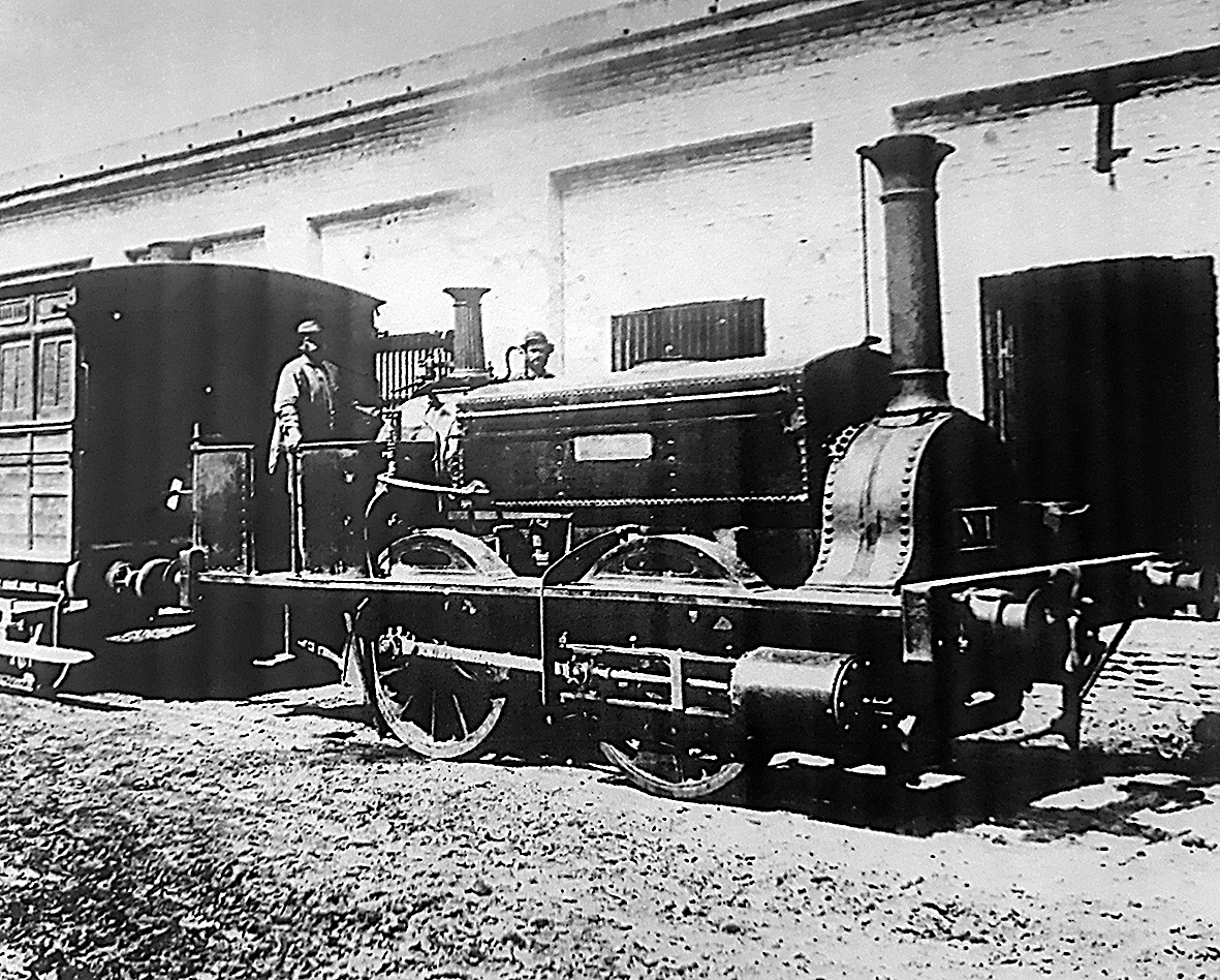 La primera locomotora a vapor de fabricación inglesa llegó al puerto de Buenos Aires el 25 de diciembre de 1856. El ingeniero Luis Elordi, administrador de la "Sociedad Camino de Fierro Buenos Aires al Oeste" fue el encargado de gestionarla. La subieron en un carretón tirado por 30 bueyes a la estación Parque, la primera totalmente de madera que se construyó en el país, ubicada donde está hoy el teatro Colón. Alcanzaba una velocidad de 25 km por hora y pesaba 15.750 kilos. Se construyeron vías paralelas o que cruzaban importantes calles de Buenos Aires. En el pueblo de San José de Flores en la estación Floresta finalizaba su primer recorrido de casi 10 kilómetros. El viaje inicial del nuevo Ferrocarril Oeste (FCO) se realizó el 29 de agosto de 1857. Previamente se efectuó una ceremonia con la presencia del entonces gobernador de Buenos Aires Valentín Alsina y autoridades, entre ellas el obispo monseñor Escalada quien bendijo y dio misa en un entablado ornamentado con flores. Toda la estación estaba engalanada con flores, banderas y globos para el momento memorable. La plaza Lavalle colmada de gente quería ver pasar el primer tren argentino. A las 13 en punto el tren se puso en movimiento emocionando hasta las lágrimas a todos los presentes. Conducida por Alfonso Covazzi, italiano, que también hacía de fogonero, llevaba pasajeros ilustres como Domingo F. Sarmiento, Velez Sarsfield, Pastor Obligado, Estanislao del Campo, Bartolomé Mitre y el cacique Yanquetruz, invitado especial. El pasaje costaba $10 en primera clase y $5 en segunda, esta última en vagón descubierto. La formación avanzó entre dos hileras de gente saludando con pañuelos, arrojando flores y disparando cohetes, hasta que se perdió en la distancia. Llegando a destino en la estación Floresta, repicaron las campanas de la iglesia del pueblo San José de Flores y sus habitantes recibieron al primer tren argentino con vítores, exclamaciones de júbilo y aplausos. Al día siguiente se habilitó el servicio para el público en general con dos frecuencias en ambos sentidos y más tarde un viaje nocturno. La "Porteña" permaneció en servicio hasta agosto de 1889. Actualmente se encuentra en el museo de Luján, Prov. de Buenos Aires. Cabe anotar que de 177 kilómetros de vías que había en 1870, pasaron a 16.500 en 1900 y en 1915 Argentina contaba con 33.000 kilómetros, ingresando en el ranking de las 10 principales redes ferroviarias del mundo