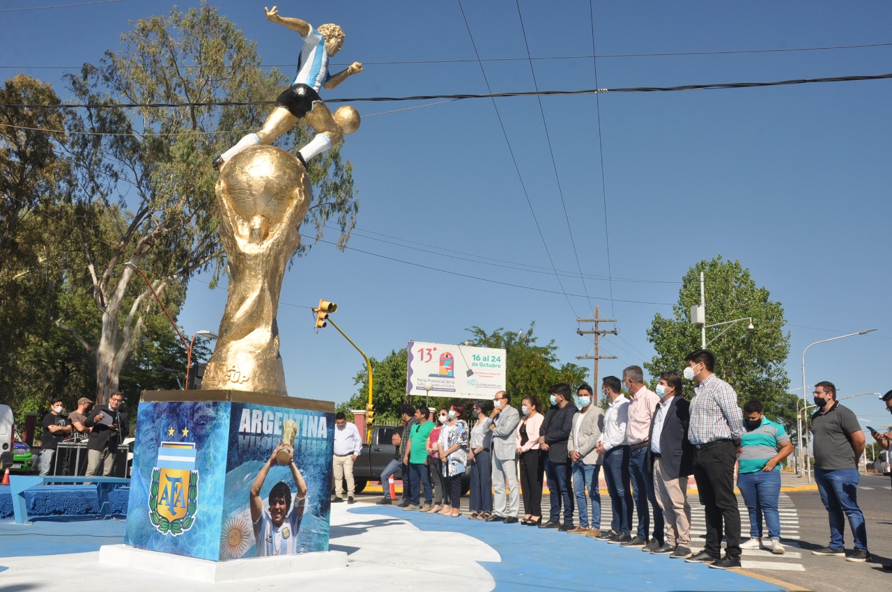 La escultura simboliza el histórico gol a los ingleses, hecho que consagró al fútbol argentino a nivel mundial, mide casi 5 metros y fue realizada por el equipo de artistas del Área Creativa dependiente de la Secretaría y Cultura y Educación Municipal en un trabajo en conjunto con la Secretaría de Deportes. Además, se culminó un mural detrás de la figura del "10" y se dio inicio a la restauración del Paseo Histórico Cultural La Superiora.