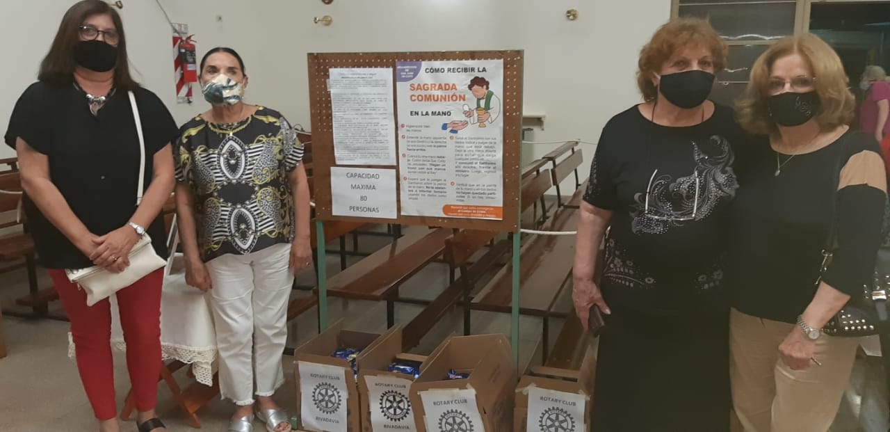 El Rotary Club de Rivadavia y las Damas de la Rueda Interna, rindieron un homenaje a la socia Fanny Navarro de Perris con motivo del primer aniversario de fallecida. Con tal motivo se oficio una misa en la parroquia del barrio Camus y al finalizar se entregaron cajas de leche para Caritas de Marquezado, lugar donde también colaboraba la extinta (foto). También, Rotary, adhiriendo al Día Mundial contra la Polio invito al XLVI encuentro de Instrucción Virtual 2020 Zona 23b que estará a cargo del promotor Distrito 4851 de Rotary Internacional Ricardo Oscar Llorente. Este encuentro tendrá lugar del 5 al 7 de noviembre próximo y las sesiones remotas serán destinadas a clubes rotarios, rotarac e interac de acuerdo a la planificación dispuestas por el instructor.