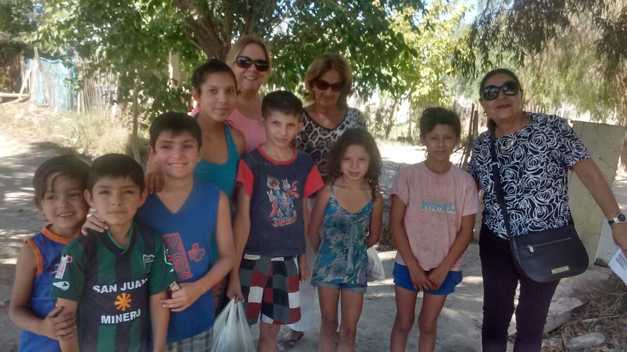 Con motivo de las festividades de fin de año, un grupo de estas damas, integrado por Juana de Gómez, Estela Frau de Cicella, Estela Montilla y Estrella Lucero, entre otras, estuvo recorriendo distintas zonas del departamento, entre ellas Villa La Paz, en La Bebida. El propósito era llegar a esas comunidades con una ayuda consistente en alimentos, pero también con juguetes y golosinas para los niños, los que fueron recibidos con mucho aprecio y entusiasmo.