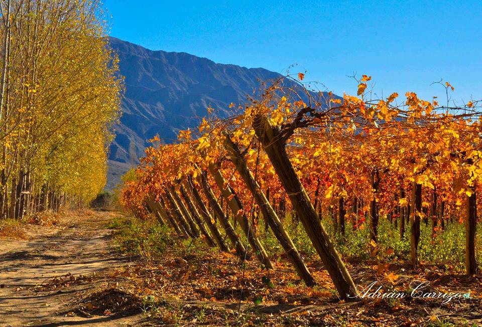 "Van titilando destellos dorados/ los senderos ocres bifurcados/ y se percibe el milagro del otoño/ en la vertiente linfa de la acequia.// En calidez de brisas, se renueva/ aroma emancipado de bodegas/ por el cálido fragor de la vendimia,/ reiterando el cántico de otoño.// Diáfano cielo recorta azules cerros/ mientras deshoja nostalgias el ramaje/ y vibra tibia estela ilusionada/ de añoranzas de profunda resonancia.// Las vides ostentan maduros racimos/ y el zonda inclemente dispersa trapecios.// Alfombras crujientes tapizan mi valle,/ mi valle dorado ¡mi valle de oro!