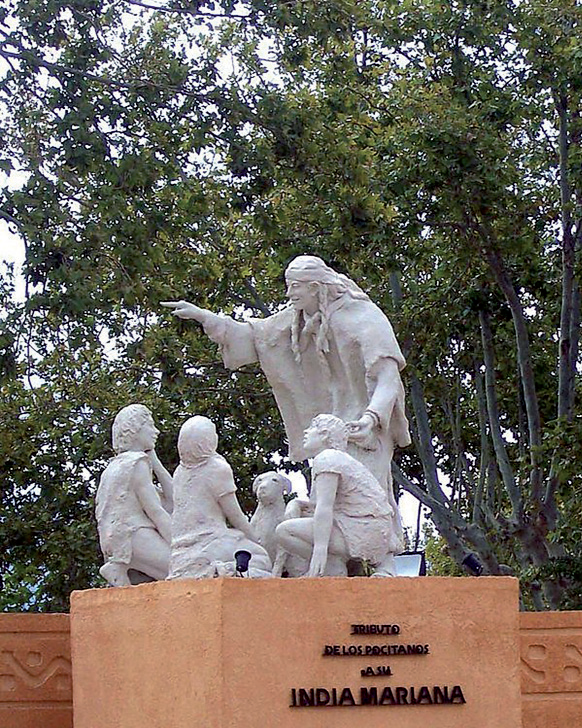 Durante el siglo XVI, camino al poblado de Mendoza y a unos cuantos kilómetros de San Juan de la Frontera, las primaveras comenzaban y los primeros deshielos vertían sus hilos de agua sobre los lechos rocosos del Valle de Tucuma. Siempre, para esa temporada, bajaba de los cerros precordilleranos una "india huarpe", de mediana estatura, muy delgada, de piel cobriza y cabellos que el viento enrollaba suavemente en su cuello. Su única compañía era su "choco". Algunos pobladores españoles y criollos que labraban esas tierras, habitaban un incipiente caserío cercano. Decían que muchos años atrás ella misma lo había plantado y que cada temporada estival regresaba a cuidarlo y cantarle. Todas las siestas junto a ese algarrobo, los niños del lugar se reunían junto a ella, para que les relatara cuentos fascinantes de pájaros gigantes y animales que hablaban. De seres de otras épocas, y de tiempos en los que solo habitaba el Huarpe. Ella, salvo ese tierno momento con los niños, vendía unas piedritas doradas, que el descendiente del conquistador español enloquecía por tener. Era oro. Siempre que algún comprador le preguntaba dónde conseguía esas "piedritas", ella contestaba que las sacaba de un "pocito", al pie de unos cerros y quebradas cercanas. Muchos hombres avaros y sin escrúpulos, siguieron a la india Mariana. Pero de aquellos que a lo largo de los años la siguieron, solo uno pudo regresar. Estaba medio enloquecido y contando de visiones de pájaros gigantes, plantas que hablaban y apariciones espectrales. Él vio a la india Mariana, en perfecta comunión, como hablaba con las plantas, guanacos y animales de esos lugares donde se convertía en Reina India.