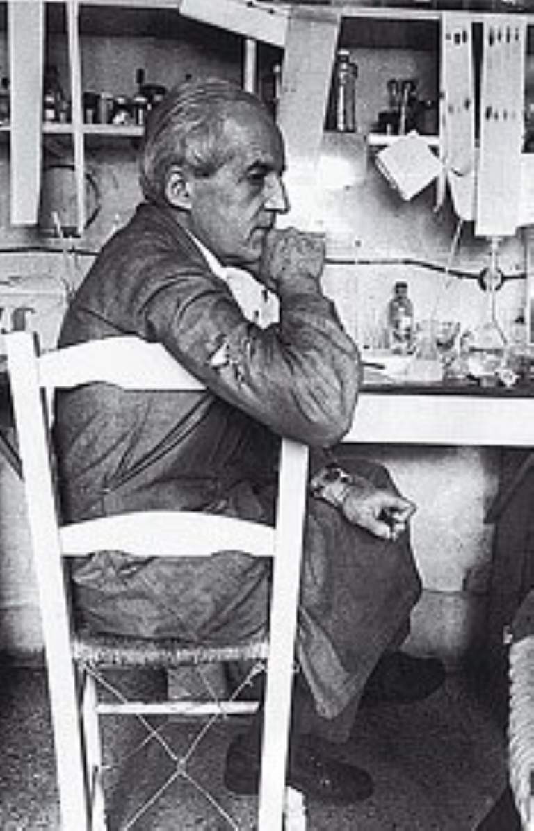 La foto pinta cabalmente al científico argentino Luis Federico Leloir. En ella se lo observa en su humilde laboratorio, investigando, rodeado de pipetas, y sentado en una vieja silla, cuyos extremos se sujetan con ataduras de alambre.¸
