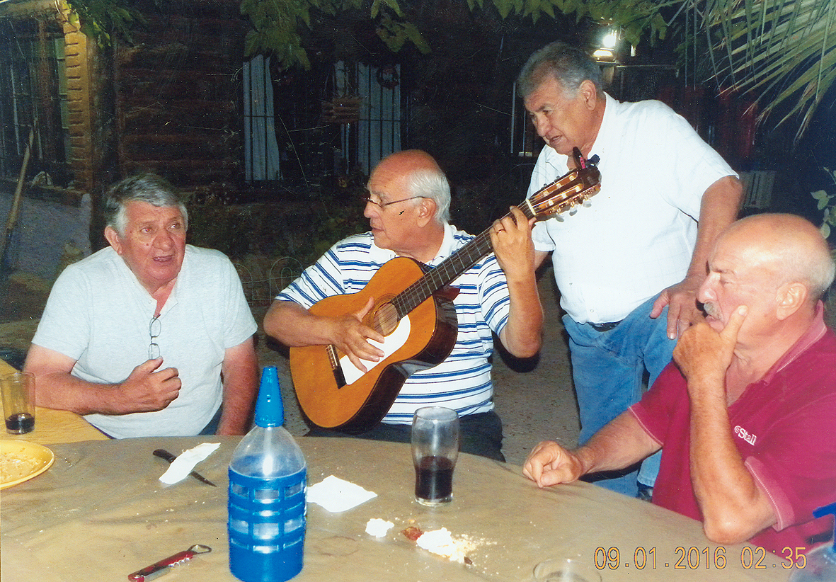 Guido González cantando, yo maltratando la guitarra, el "Golo" y el "Pirincho".