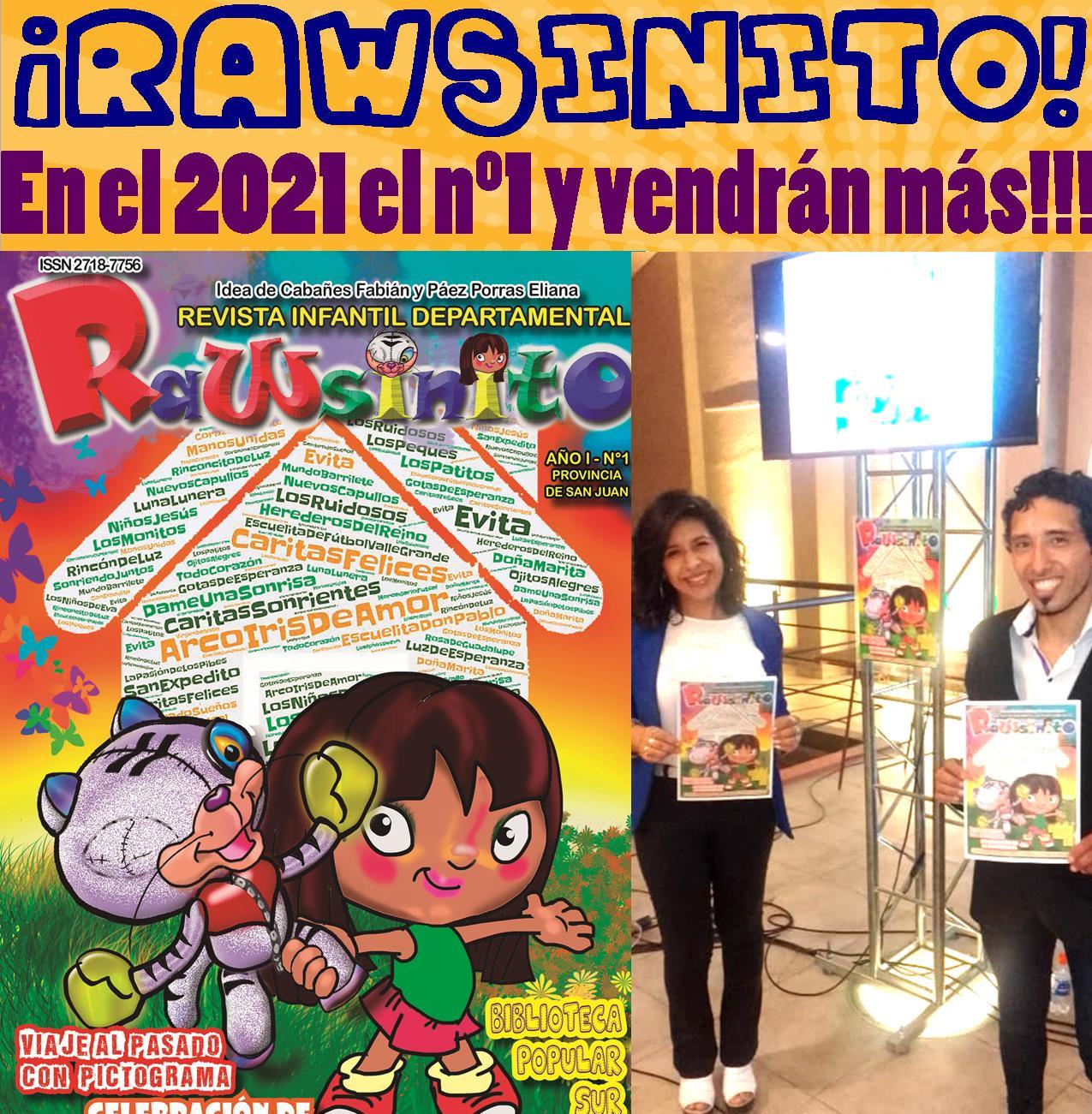 Rawsinito fue creada y dirigida por la Prof. Eliana Páez Porras y el Lic. Fabián Cabañes. Nace en el 2021 y en su primer año el primer número de la Revista Infantil del Departamento de Rawson es: 1) Lanzado en la Feria Provincial de la Cultura Popular y el Libro; 2) Declarado de Interés Cultural por el Ministerio de la Cultura de la Nación; 3) Declarado de Interés Departamental, Social y Cultural por el Municipio de Rawson; 4) Invitado por diferentes medios de comunicación provincial de tipo radial, televisivo y de prensa en papel, entre ellos DIARIO DE CUYO; 5) Distribuido en merenderos rawsinos, incluyendo talleres literarios con los infantes que asisten a estas instituciones; 6) Entregado en carácter de donación a Bibliotecas Populares de la provincia y 7) Montado en fotografía las páginas del primer número en el marco de un nuevo aniversario de la Biblioteca Popular Sur, entre otras. En este nuevo año invitamos a la comunidad sanjuanina a sumarse a este proyecto desde el aporte en el contenido de la misma hasta la colaboración en la financiación de la impresiones para llegar a más merenderos y comedores infantiles.