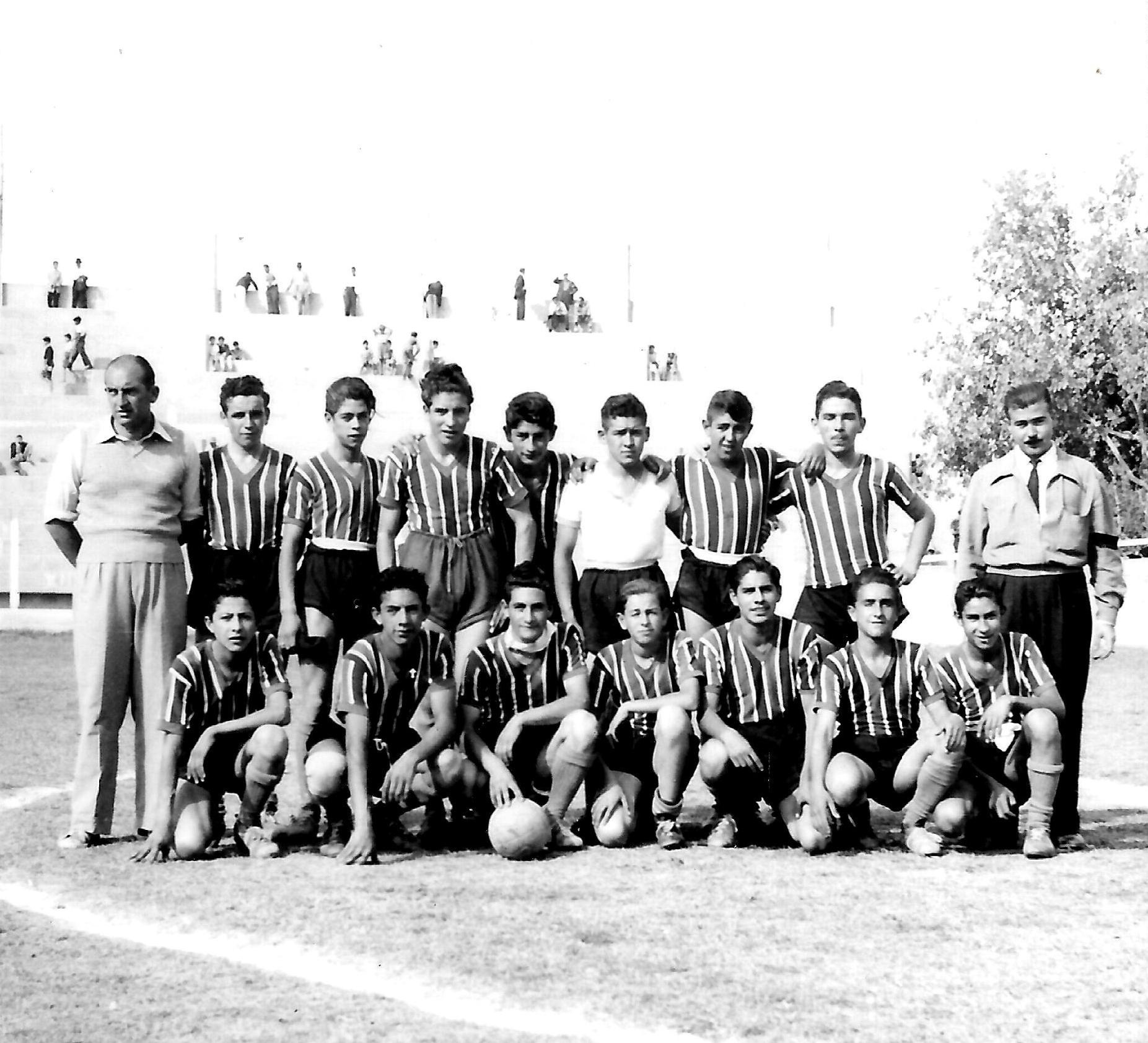 La Liga Sanjuanina de Football fue el 31 de enero del año 1921, afiliada a la Asociación del Fútbol Argentino. Realiza desde ese año, campeonatos locales dentro de su jurisdicción y también el campeonato provincial con intervención de las demás ligas oficializadas. Arrancó con catorce clubes oficializados, 7 de primera categoría, a saber: Atlético de la juventud, Atlético San Martín. Atlético Juan A. Graffigna, Sportivo Peñarol, Sportivo Desamparados, Atlético Los Andes y Sportivo Juan B. del Bono. Siete equipos de segunda categoría; Centro Deportivo Benjamín Sánchez, Sportivo Racing, Sportivo Árbol Verde, Atlético Ferroviario del Estado, Atlético López Peláez, Atlético Independiente, y Atlético El Globo (Mediados de la década de 1940. Las fotos nos muestran un torneo realizado en el ya destruido Estadio del Parque de Mayo en el Año 1950, "Año del Libertador”. Participaron todos los clubes de fútbol, oficiales y los de 2º categoría, como así las ligas de otros departamentos, la de Pocito y la de Caucete. Este torneo tenía la categoría de "Torneo Provincial”. Los premios eran otorgados por el Gobierno de la Provincia. Toda una fiesta del deporte y del fútbol en particular. Los clubes de pocos recursos dejaban el alma en la cancha y la pasión por saberse jugadores y llegar a la copa, hacía que cada club, cada jugador, dejara todo su profesionalismo por el honor de su camiseta. Era amor y pasión por su club, y no especulativos intereses económicos que muchas veces no dan lugar a la amistad. Los tiempos han cambiado, la pasión detrás de la pelota, todavía sigue intacta. Sólo he seleccionado 3 fotos, ya que colocar todas y de todos los clubes, (son más de 50) no habría lugar en la página, no obstante están allí, estancadas en el tiempo, cuando la alegría de los jugadores está presente.