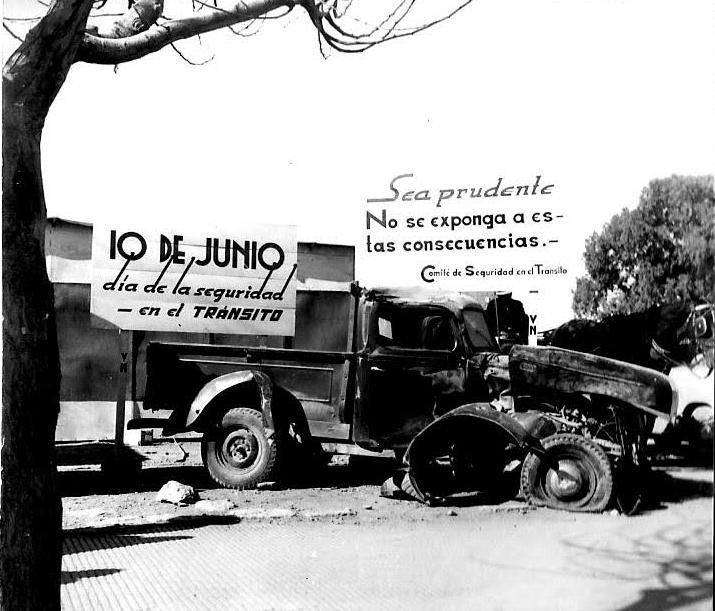 Foto: José Mazuelos. Año 1946 en una campaña de concientización para respetar las leyes de transito.