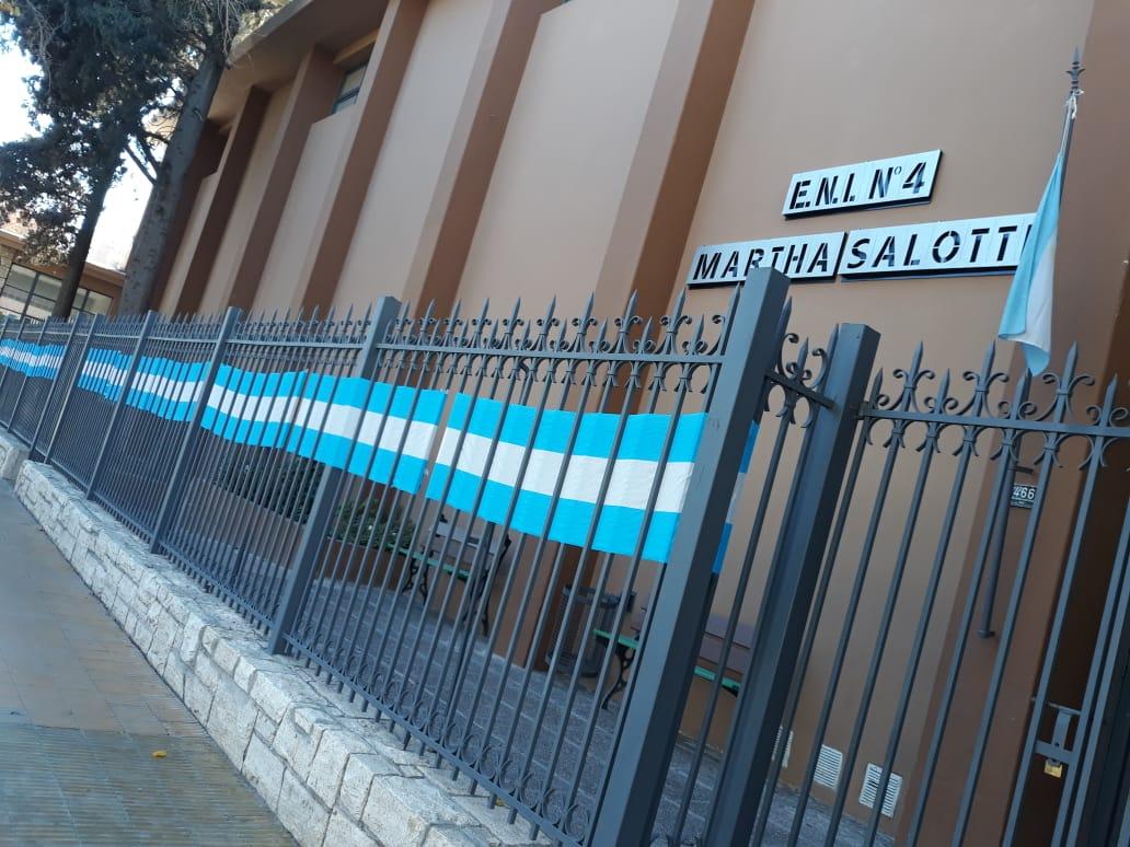 Una gran emoción me provocó ver en estos días los colores de nuestra Bandera nacional en algunos establecimientos educativos, a pesar de que no haya concurrencia de alumnos. Me pareció un gesto muy patriótico, haberse tomado un tiempo para engalanar las escuelas con los colores patrios, por el mensaje que esto transmite en la comunidad y en los chicos, que a pesar de no estar asistiendo a clases son receptores de este tipo de iniciativas. Un caso concreto como ejemplo es el de la ENI (Escuela de Nivel Inicial) que funciona al lado de la Escuela Antonio Torres, de la ciudad Capital, que desde hace unos días luce en la reja que está junto a la vereda de calle General Acha, una bandera que se extiende a lo largo, confiriendo un sentido patriótico en estos días próximos a celebrarse un nuevo aniversario del 25 de Mayo de 1810.