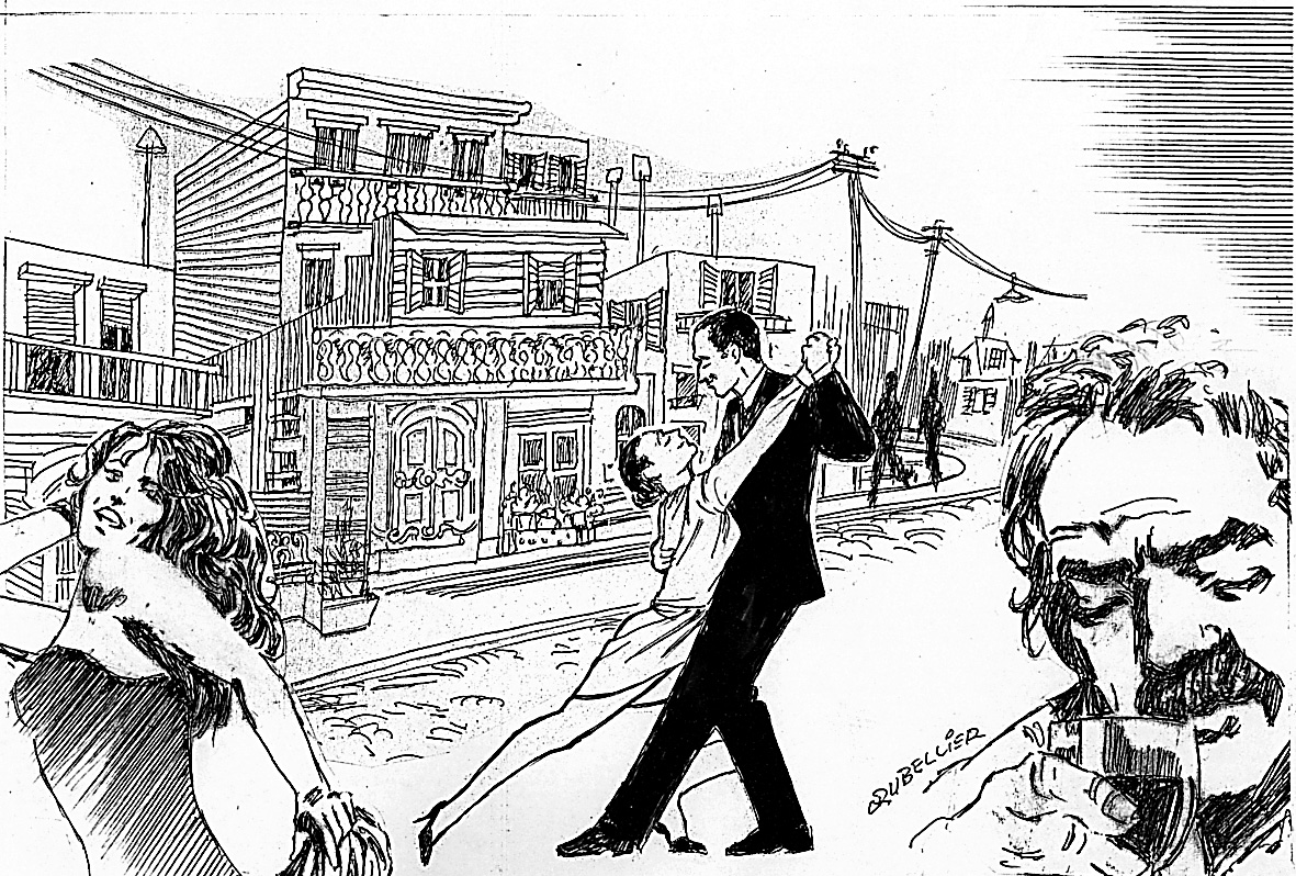 El tango y el vino son dos amigos inseparables. Amistad que viene desde mediados del siglo XIX, cuando el único vino que se tomaba era el de los españoles, el "carlón". El tango, por su parte, comenzaba a tomar forma a partir de su mezcla con las viejas habaneras, que introdujeron por aquellos años los inmigrantes de raza negra. Javier Barreiro en sus estudios sobre orígenes del tango dice que "el influjo y aleación del candombe con las habaneras, danza llegada desde Cuba, y las que se bailaban por entonces en Buenos Aires, va a promover un nuevo tipo de baile, más rítmico y procaz, que se asienta en prostíbulos y suburbios". Había nacido el tango. Este ganó el favor de los porteños y los primeros grandes autores comenzaron a mechar sus letras con el alcohol. El protagonista necesitaba del espíritu del vino para olvidar, recordar, ponerse alegre, triste, o simplemente, para encurdelarse. Hay una situación particular, que resulta conmovedoramente íntima y subyugante. Es cuando la pareja se invita mutuamente a tomar, para enroscarse en el alcohol y observar la realidad con la cabeza dando vueltas. "Los mareados" es un hito magistral en este sentido. "Rara como encendida, te vi bebiendo, linda y fatal" y en la conciencia de la despedida inevitable, él le dice un verso memorable: "Hoy vas a entrar en mi pasado". ¡Grande, Cadícamo! En "Nuestro balance", de Chico Novarro, el hombre invita, "sentémonos un rato en este bar, a conversar serenamente. Hagamos un balance del pasado, como socios arruinados, sin rencor". Beber, para el inventario póstumo del que ha quebrado, y baja la persiana de ese amor. Pero entra también al bar el hombre que sólo toma por tomar. Porque le gusta el escabio, "de puro curda". Sin provocar ni obligar. "Tu copa es ésta y la llenaste. Bebamos juntos viejo amigo", dice ella en "Por la vuelta". En esa historia había pasado "justo un año desde que nos separamos sin un llanto, ninguna escena, ningún daño, simplemente fue un adiós inteligente de los dos". Nada que agregar a un epílogo sin reproches, inteligente como dice su letra. Toma, también, el hombre triste. Abandonado de la vida. Bebe porque le falta ella, el aire y la luz. "Dicen mis amigos que mi vino es triste", de Romero y D’Arienzo. Finalmente, una visión existencialista y profunda de la vida exhibe Cátulo Castillo en "La última curda" con la imponente frase "ya sé, no me digás, tenés razón, la vida es una herida absurda". ¿De qué nube resplandecida toman estos poetas esos giros, que se elevan triunfales, desde el suelo contaminado que habitamos los mortales? Tango, vino, champán, caña, mujeres, amores furtivos, amores terminados, fracasos y la noche, esperando que se embriague en ella, el hombre cansado de perder y no esperar nada de la vida o dispuesto a reírse de esa herida absurda, que lo tiene "desorientado y sin saber que trole hay que tomar, para seguir".