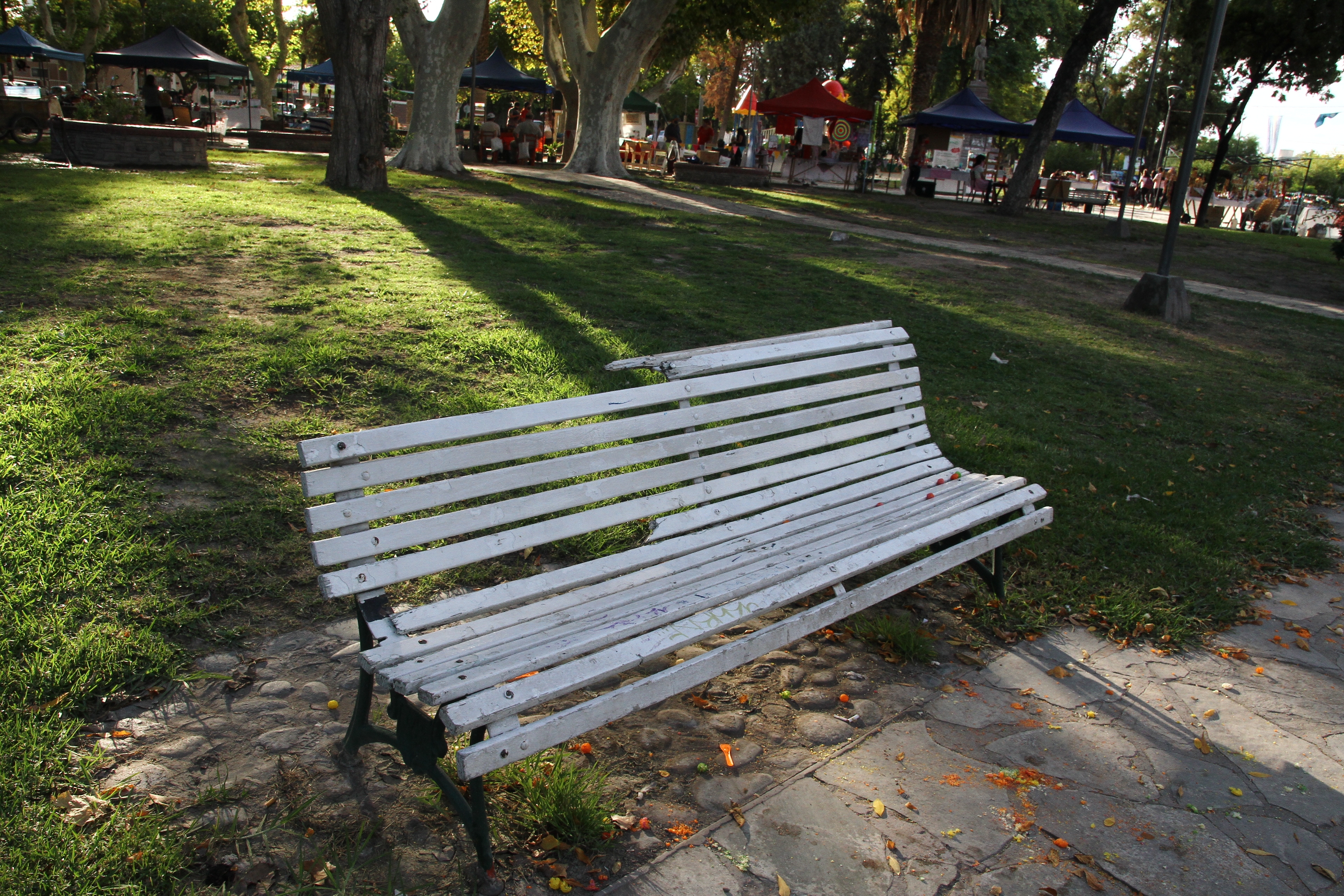 La plaza de Desamparados sufre el constante ataque de vándalos que destruyen todo a su paso. Esto no sólo ocurre aquí, sino en todo el Gran San Juan y me animo a decir que en toda la provincia. En este paseo público se pueden ver que los bancos les faltan maderas como también algunos que se nota la violencia con la que actuaron estos inadaptados, dejando a los asientos astillados, probablemente por las patadas que les dieron para romperlos. Cabe recordar que por este paseo público circulan miles de personas por día. Además, los fines de semana es centro de exposiciones artesanales y también al estar frente a la Basílica de Nuestra Señora de los Desamparados y la zona comercial, el tránsito de personas es importante. Por estos motivos es de esperar que el municipio capitalino repare y cambie los bancos dañados, además de colocar cámaras de vigilancia o bien policías que cuiden el orden en el lugar para evitar el accionar de los antisociales.