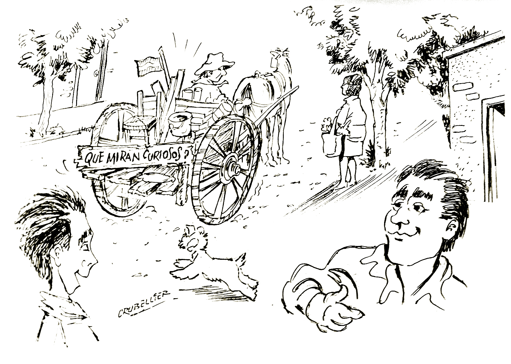 Quien sabe que mano me empuja hacia el sitio inaugural de mi infancia. Pero dejo que actúe. No la detendré ya nunca. Y mientras pasan los años, más lo vivo y más retorno. Siento confluir el hoy con el ayer. Hoy, por ejemplo, vienen a mi memoria aquellos pregoneros ambulantes, que ofrecían sus productos o servicios, reclamando la atención de nuestras madres a viva voz, o emitiendo diversos sonidos que los hacía inconfundibles. El afilador de cuchillos, soplaba una flauta con una aguda escala ascendente y descendente, haciendo una convocatoria rápida a los interesados en mejorar el filo de sus cuchillos, porque no detenía su marcha. El chirrido de la lámina de acero al ser rozada por la rueda del afilador, revelaba que estaba en plena tarea. El "achurero" del barrio era don Oviedo, según recuerda el "Golo" Tapia, que vivía en la Villa Flora y repartía achuras en carretela. "Cantonista a muerte". Recuerda Guido González que no gritaba "achurero", sino: "¡el rotisero señora!", en la creencia que le daba más realce a su mercadería. Recuerdo a un muchacho que tenía cierta discapacidad, pero eso no le impedía pedalear y al grito de "¡Lo-tería!", cortado al medio por su dificultad para vocalizar, repartía la esperanza de cambiar de vida, con un golpe de suerte. Don Espinoza fue nuestro sodero de entonces, oficio que siguieron sus hijos. Lo hacía en camioneta y también vendía en su casa sobre Cereceto. Recuerda Rodolfo Crubellier que, también se instaló sobre calle San Miguel, la sodería de "Roca y Criado", afianzada por muchos años. Muy esperado por los chicos era un hombre que apodaban "el Velita", que en un triciclo de color blanco vendía helados. El repartidor de diarios era don Ramírez, quien lo hacía en bicicleta y sobre la rueda delantera había acomodado una caja de gran tamaño, donde llevaba diarios y también revistas. A mi viejo le traía todos los meses la "Selecciones". También distribuía el "Pif-Paf", "Puño fuerte", el "Patoruzú" y otras revistas de historietas, que el tiempo ya sepultó. El padre de los hermanos Montenegro, el "Chanchero" y el "Mengueche", era el lechero, que la portaba en aquellos clásicos tachos de lata, de gran tamaño, que colgaban desde el lomo de un burro. Tenía vacas en su casa de calle Del Medio y Villicum, en plena Villa Rodríguez Pinto. Don Raúl, más acá en el tiempo, incluso de mis hijos cuando niños, fue otro lechero señorial de la esquina. Paseaba los niños en su carretela, siempre prolija e higiénica, por lo cual fue también, muy querido. En un carro destartalado, pasaba un hombre que apodaron "El Curioso", pues había colgado una leyenda atrás, que decía "Qué miran curiosos". Se dedicaba al arreglo de cachivaches o a comprarlos. El "Silletero", por su parte, se dedicaba a arreglar las sillas de totora. El "Quesero" de frente a Bodega Cinzano, también era otro clásico vendedor ambulante. Un turco que vendía telas para bordar, que ya traía dibujado el motivo, anunciaba "Tela linda, bonita y baratuuu". Seguramente omito otros de estos personajes entrañables, que formaron parte de la escena cotidiana de nuestro barrio, allá por los años cincuenta del siglo pasado.