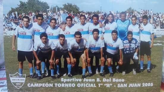 El club sobrevivía con el aporte dinerario de los dirigentes y ese año Del Bono fue campeón de la "B”. Trajeron jugadores como Fabián "Tato” González, Roberto Soria, Juan Sosa, Elvio Illanes, Fernando Gaetan, Raúl Farías, Daniel Galletti, Emanuel Reta, Fernando Flores, Juan Ruiz, Cristian Quiroga, Cristian Diele, Martín Marinero, Fabio Zapata, Pablo Moreno, Mario Soto, Daniel Tello y el "negro” Marín, que junto a Adrián Díaz, Johnny Martínez, el "Payaso” Araoz, el "Chancha” Quiroga, Roberto Riveros, Daniel Cejas, conformamos un equipo excepcional. La dupla técnica fue "Roly” Rodríguez y Pablo Saavedra. Ese equipo obtuvo el campeonato del año 2005, por vez primera, y de manera invicta, algo que muy pocos lograron. Después disputó el torneo del interior, pero no pudo llegar a los campeonatos de la AFA.