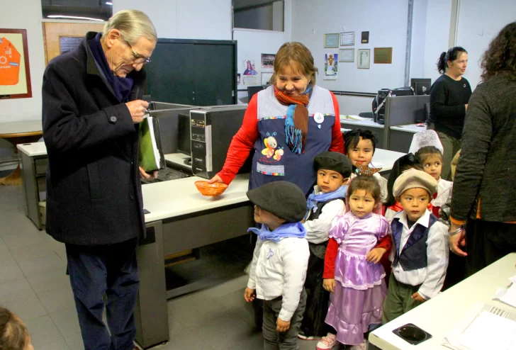 La Semana de Mayo comenzó con la alegría de los niños. Un grupo de 12 pequeños de salas de 3 años llegaron desde La Puntilla, departamento San Martín, hasta el centro de la Ciudad Capital de San Juan. Los chicos pertenecientes a Jardines de Infantes Nucleados Zonales (Jinz Nº 12) , de las escuelas Ciudad de Bailén y Ernestina Echegaray de Andino, visitaron distintos lugares, como la Peatonal y DIARIO DE CUYO. Vestidos de gauchos y damas antiguas, con bellísimos atuendos, los chicos repartieron escarapelas a los sanjuaninos para celebrar el mes patrio. Los alumnos estuvieron acompañados por la docente a cargo de la Dirección del colegio, Adriana Ramos, y la docente Rosa Quevedo, de la Escuela Ciudad de Bailén.