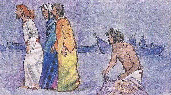 Pasando junto al lago de Galilea, Jesús vio a Simón y a su hermano Andrés, que eran pescadores y echaban las redes en el lago. Jesús les dijo: “Vengan conmigo y los haré pescadores de hombres.” Inmediatamente dejaron las redes y lo siguieron. Un poco más adelante vio a Santiago, hijo de Zebedeo, y a su hermano Juan, que estaban en la barca repasando las redes. Los llamó, dejaron a su padre Zebedeo en la barca con los jornaleros y se marcharon con él (Mc 1,14-20).