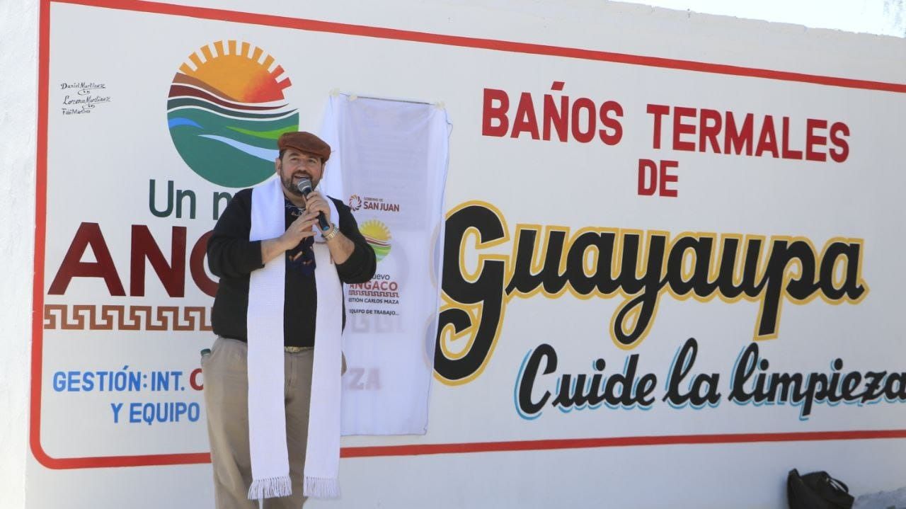 El intendente de Angaco, Carlos Roberto Maza, dispuso recuperar estos baños termo-minerales de azufre y ahora existe una estructura básica y un régimen de visitas con las recomendaciones de salud básicas que rigen para cualquier persona en todos los baños termales del mundo. La primera etapa consistió básicamente en trabajos como el techo de quincho, parrilleros, reparaciones varias, bancos y otras labores menores.