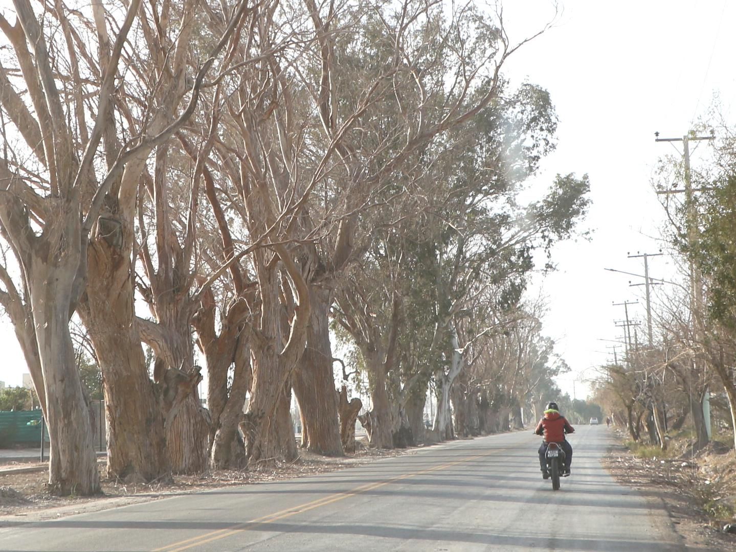 En Rivadavia en el límite con Rawson por calle Meglioli hasta llegar a República del Líbano, es impresionante ver eucaliptos secos, muertos a la orilla de las calles. Lo mismo sucede en calle Comandante Cabot, al Este, por mencionar tan solo algunos ejemplos.