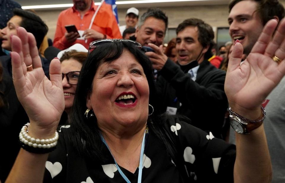 Los opositores a la constitución propuesta de Chile aplauden al escuchar los resultados de un plebiscito.