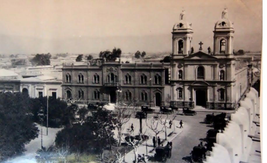 No recuerdo qué edad tendría. Habían pasado varios años desde el terremoto del "44. De la mano de mi madre cruzo la plaza Veinticinco hacia el norte y nos enfrentamos con un rojizo galpón de emergencia. Eso era ahora la Catedral, instalada casi al centro de la plaza; precaria construcción de chapas, ámbito sustituto a raíz de la catástrofe producida.