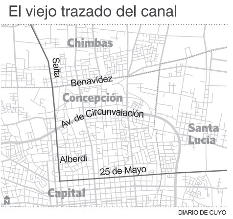 Algunos abuelos han de recordar, que por allá en la década de 1940, ese caudal se prolongaba por la calle 25 de Mayo, o “calle de los harineros”, que tenía un largo recorrido, terminando su cauce en “aguas de regadío”, en fincas de Santa Lucía y 9 de Julio.