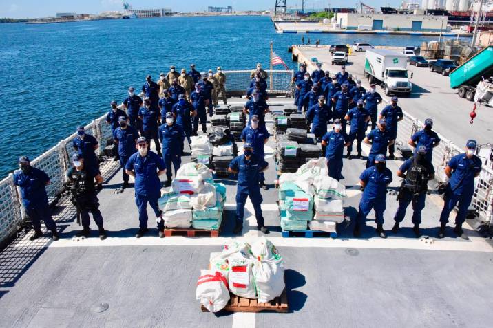 Operativo de la Guardia Costera de EEUU que decomisó varias toneladas de drogas en el mar Caribe.