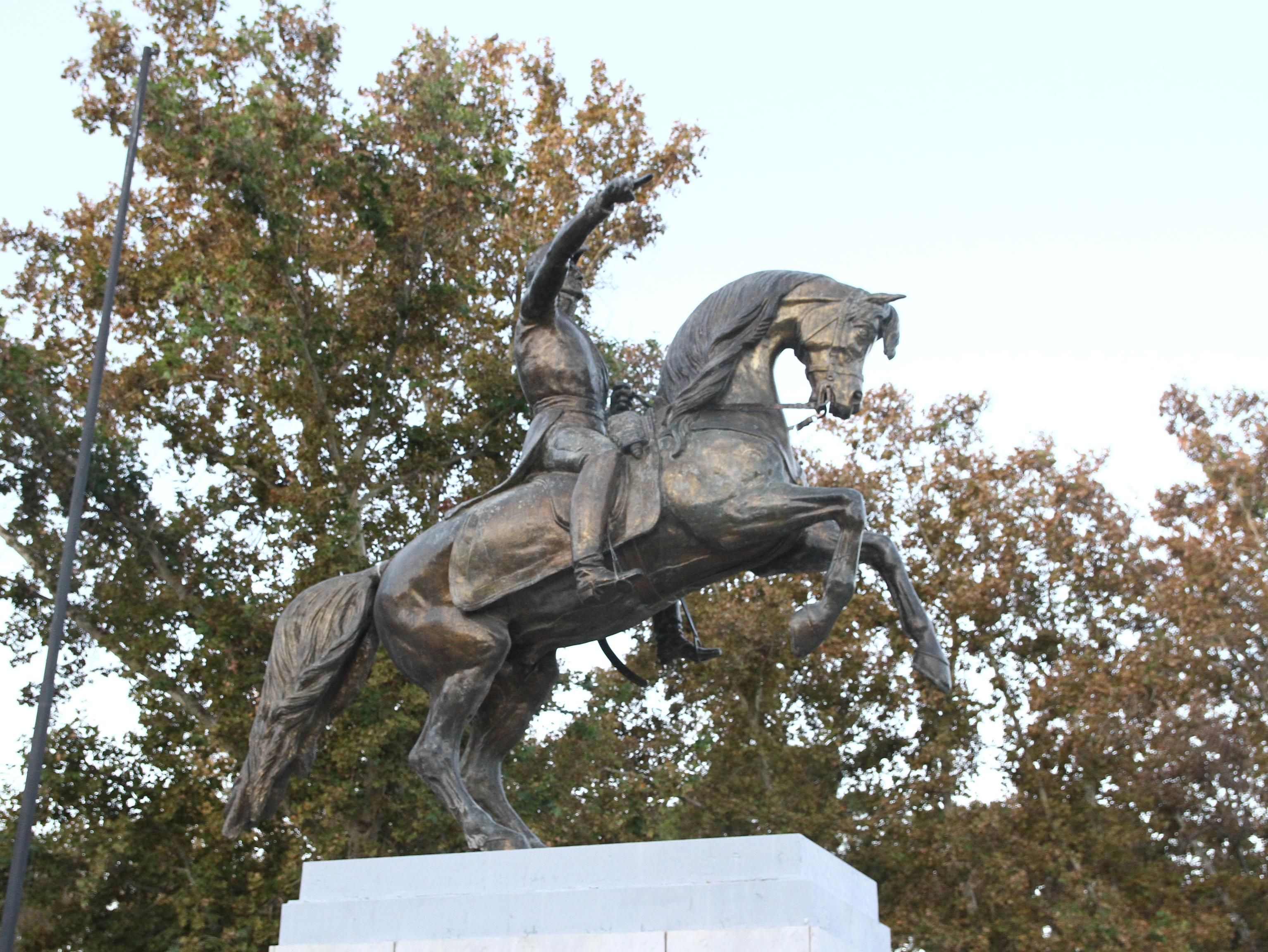 El 21 de octubre de 1913 se promulga la ley durante el gobierno de Victorio Ortega autorizando erigir una estatua al Libertador General José de San Martín en el Parque de Mayo. Así el Poder Ejecutivo gestionó ante el Gobierno Nacional un subsidio para ayudar a costear los gastos. La estatua se ubicaría en terrenos expropiados en 1910 a la familia del General Nazario Benavídez. Se decidió realizarla en bronce haciendo una réplica del monumento ecuestre de Mariano Tomás Dumas, que se encontraba en Buenos Aires, en la Plaza San Martín. Su inauguración fue el 9 de Julio de 1916.